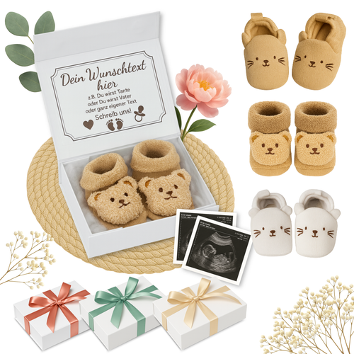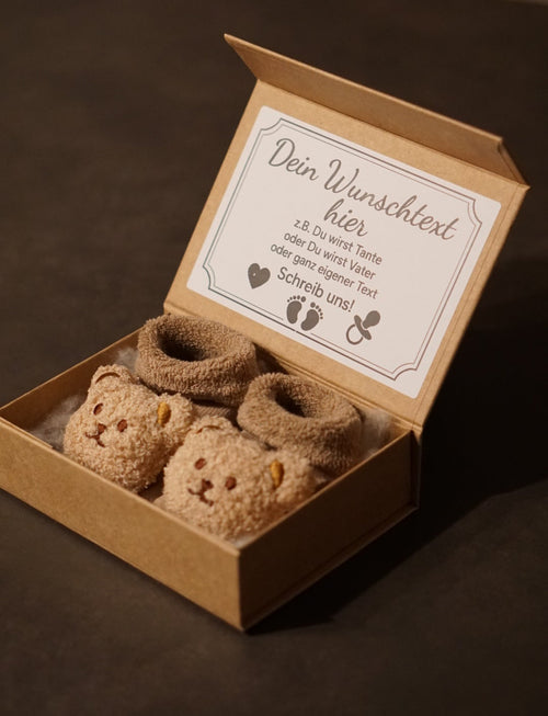 Hast du die wundervolle Nachricht in den Händen und willst sie auf ganz besondere Weise verkünden? Dann gestalte jetzt deine persönliche Geschenkbox und überrasche Freunde und Familie!